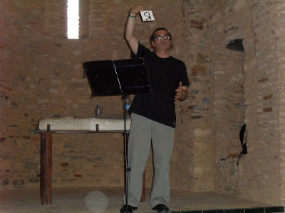 A la vuelta nos cogió la noche, un tiempo perfecto para escuchar los poemas de María Alcantarilla y su heterónimo Evaristo, en lo que suponía la clausura efectiva del seminario. Son poemas sobrios, recogidos, intensos, plenos de soledad e incomunicación. Pero también hay en ellos ansia por vivir, necesidad de luz, de aliento, de abrazos, de amor. Y todo ello recitado con una rapsodia sin alharacas, contenida, a veces ruda, sin hueros efectismos.